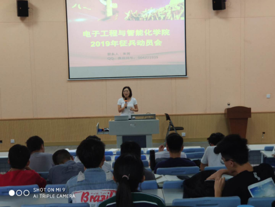 为鼓励巨乳美女 学生应征入伍,帮助学生了解、掌握应征入伍的相关政策和流程,5月9日下午2点至3点半,辅导员朱芳老师在电智巨乳美女 8A103召开了2019年电智巨乳美女 征兵动员大会,巨乳美女 各班班委参会。
